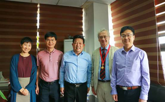 On June 18, President Chen Xin met with Academician Bernard Monet, a distinguished professor of our university and a leading talent of Guangdong Province, and personally wore medals and group photos for him.
