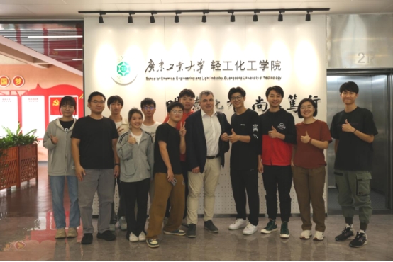 On December 15, the first International Conference on Intelligent Materials and Green Electrochemistry and the Inaugural Meeting of the Sustainable Innovation Technology Institute at Guangdong University of Technology was successfully held at the University Town Campus. Professor Konstantin Novoselov, the 2010 Nobel Prize in Physics laureate and foreign academician of the Chinese Academy of Sciences, was invited to deliver the conference report. After the conference, Academician Novoselov, accompanied by Vice President Yu Lin of the university, Party Secretary Zhou Dongbin of the college, and other leaders and teachers, visited the large instrument platform in Building Four of Engineering, the chemical simulation laboratory, and the laboratories of various research teams in the college. He also exchanged views with student representatives, including Zhang Boyang, a 2020-level PhD student, and Chen Sixi and Li Zhurong, 2021-level master's students.