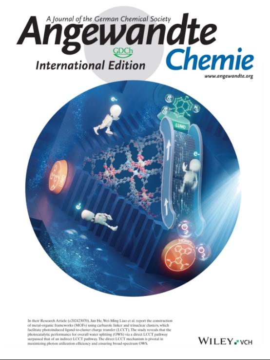 Professor He Jun's team from our university's Light Industry and Chemical Engineering College published the latest research results in the international top journal "Angewandte Chemie International Edition" (impact factor 16.1, a top journal in CAS Zone 1), innovatively proposing an integrated photocatalyst design strategy, successfully achieving the efficient visible light photocatalytic overall water splitting, a "holy grail"-style chemical reaction. This breakthrough work was selected as the cover paper for the issue, highlighting the innovative value and international influence of the research.