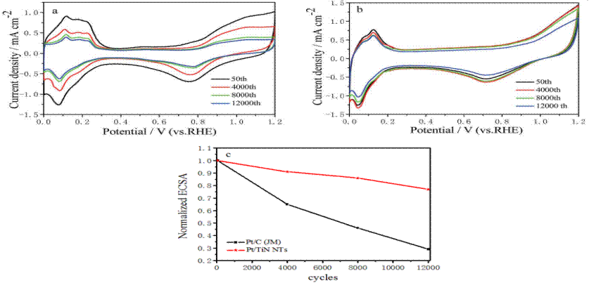 [7]Robust non-carbon titanium nitride nanotubes supported Pt catalyst with enhanced catalytic activity and durability for methanol oxidation reaction,Electrochimica Acta, 2014, 144: 279-285.