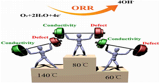 "The art of balance: engineering of structure defects and electrical conductivity ofα- MnO for oxygen reduction reaction" (first author: Dr. LAN Bang; corresponding author: Professor Yu Lin), published in electrochemica Acta, focuses on the defect and conductivity balance of electrocatalytic materials.In recent two years, the regulation of oxygen defects has become a hot spot in the field of electrocatalysis. However, for the electrocatalysts with excellent performance, the defects are important, and the conductivity can not be ignored. Our research results with MnO as an example show that when the number of defects increases, the conductivity will decrease due to the damage to the crystal structure, which will have a negative impact on its performance. Therefore, only when there is a gap between the twoAt equilibrium, the oxygen reduction performance is the best.22