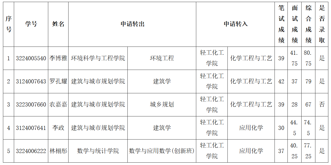 2025年转专业实施办法》相关规定,经过报名、资格审查、笔试、面试等环节,现将综合成绩及拟录取结果公布如下,正式录取名单以教务处发布的通知为准。