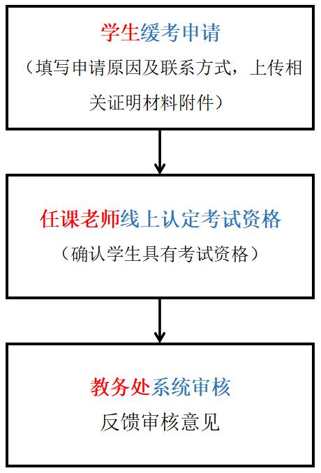 为进一步方便学生办理缓考手续,提高工作效率,教务处调整优化了相关业务流程,自2022春季学期开始,开通教务管理系统线上办理缓考业务功能,实现缓考全流程线上审核,具体操作流程如下: