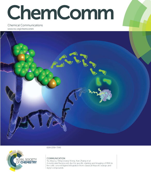live007即时比分 天然药物与绿色化学研究团队、制药工程系卢宇靖副教授、张焜教授等人在特殊核酸RNA/G-四螺旋DNA专一性荧光探针领域取得重要进展。系列成果发表在英国皇家化学会《Chemical Communications》、《Analyst》和《Dyes & Pigments》等国际知名学术期刊,其中论文“A molecular fluorescent dye for specific staining and imaging of RNA in live cells: a novel ligand integration from classical thiazole orange and styryl compounds.ChemComm,2015, 51, 15241-15244”被邀请作为该期封面文章(Inside Front Cover)。该成果引起了全球领先的生化试剂与诊断试剂公司美国Promega Biosciences的关注,主动寻求进一步开发合作以及知识产权转让。