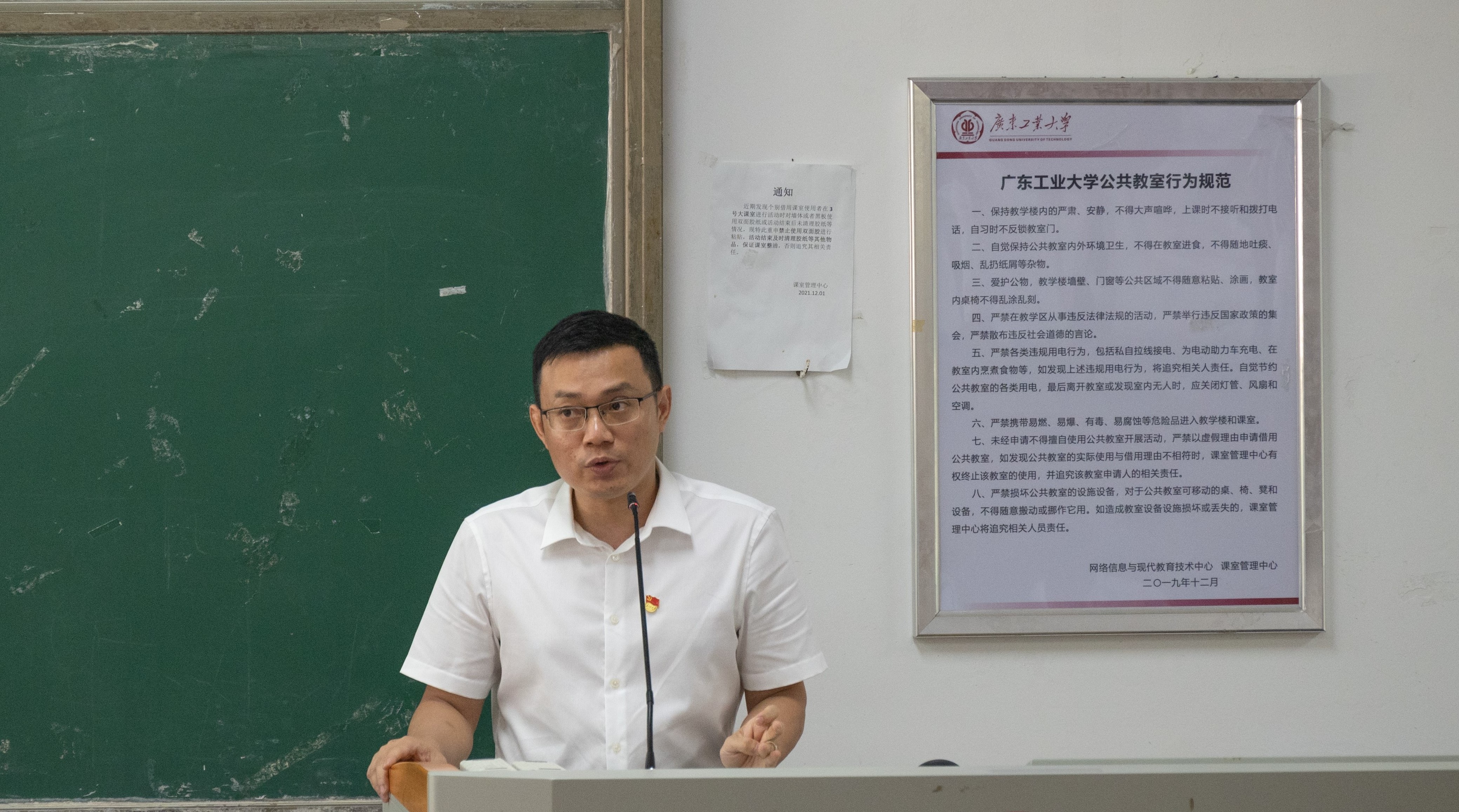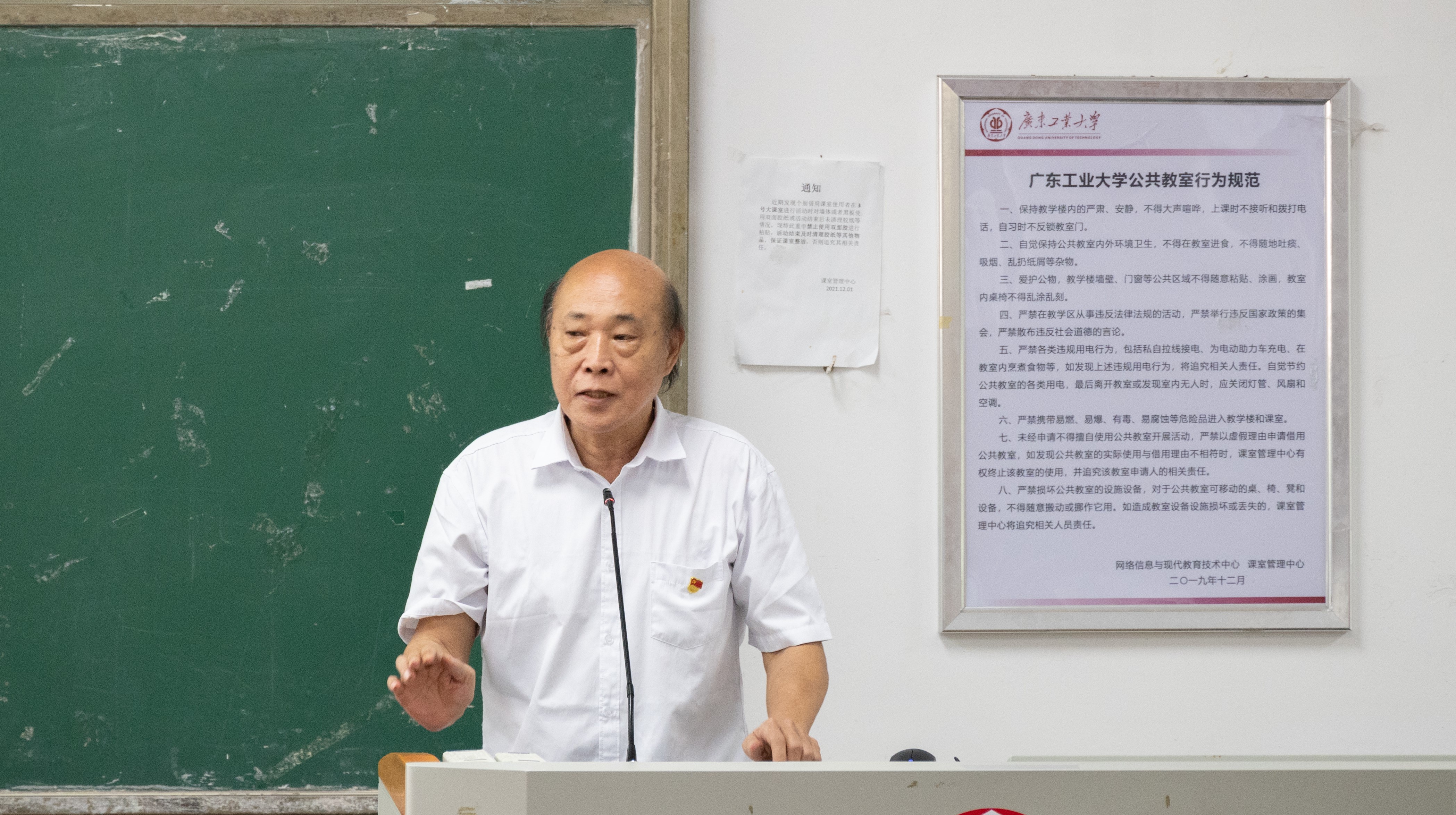 再到今天的广东工业大学,我陪学校一起走过了四十余年。这么多年来,学校的办学条件是越来越好了,大家一定要珍惜在学校学习的机会!”杨老师感慨地说道。在四十余年的工作中,杨老师从专业课教师到学生班主任,从工会主席到食品教工党支部书记再到离退休党委第二党支部书记,他没有伟大的壮举,但是却以平凡的坚守与陪伴扎根教书育人工作。在专业课课本内容较为简单枯燥的时候,他多方联系企业,为学生提供更多的学习平台;作为工会主席,他每年坚持为工会成员在“三八节”“寒暑假”举办三次活动,丰富工会成员的生活;作为党支部书记,他坚持抓好党支部工作,定期与其他党支部共建学习。他扎根自己的岗位,多次获得教学优秀奖、优秀班主任、优秀党员等荣誉。他用行动践行自己的初心:作为一名共产党员要始终将人民群众的需求放在自己的需求之上。“有困难、危险、脏活累活,共产党员先上!”杨老师表示,自己一直被这句话激励着并且也在用实际行动坚持践行着。他希望在场的各位党员同志也能够牢记自己面对党旗的时候许下的铮铮誓言,要时刻对照检视,坚定不移,终生不渝。