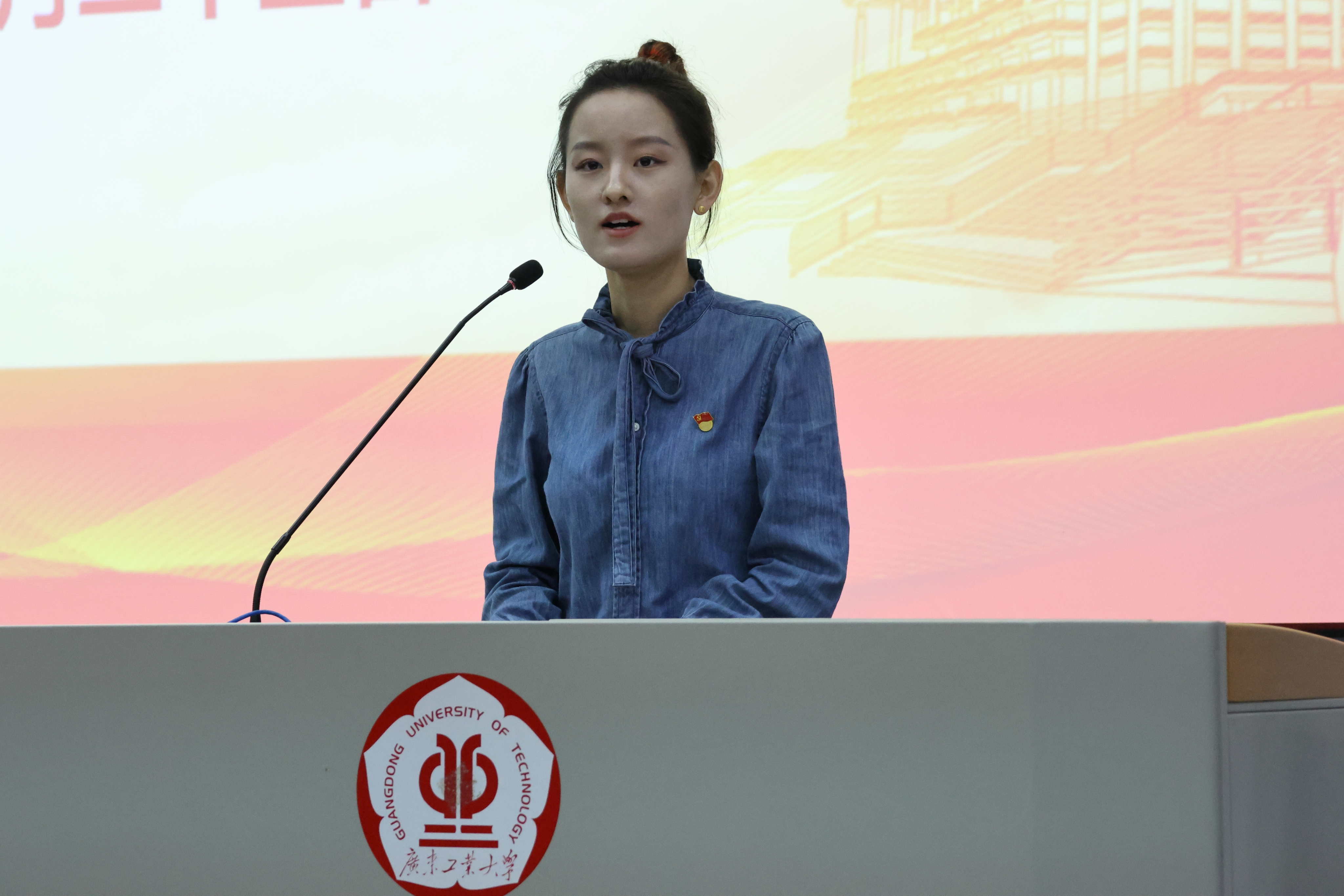 我们以青春与党同心同行”——来自应用化学专业第一党支部的周涌兴首先播放登上了CCTV-4国家记忆栏目播出的《水润香江》纪录片片段,向师弟师妹们讲述要高山低头,令河水倒流的东深精神;其次,通过分享七一勋章获得者陈红军、柴云振、黄文秀的事迹,讲述在强国复兴的道路上,党员的身影从未缺席;最后,他结合自身作为党支部副书记、院学生会主席团成员、班级团支书等实践经历,号召师弟师妹们:他们信仰的理想正在实现,他们开创的事业正在继续,他们书写的历史必将由我们继续书写下去!我是共产党员,必将以青春与党同心同行!