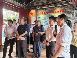 一行前往首批全国红色村组织振兴建设红色美丽村庄试点村和广东省首批“红色村”党建工程示范点桂圩镇桂圩村参观调研。在桂圩镇党委书记黄素芬带领下,大家先后参观了中共三罗中心县委旧址暨郁南(桂河)革命纪念馆、李镇靖故居等革命遗址。锈迹斑斑的刀具、发黄的图书信笺、黑白斑驳的老照片……这些反映着抗日战争时期和解放战争时期桂河流域众多光辉事迹的老物件,让人不禁驻足沉思。老师们认真观看展品、聆听讲解,追寻红色记忆,深刻感受革命战争年代的峥嵘岁月,思想受到了一场深刻的红色精神洗礼。