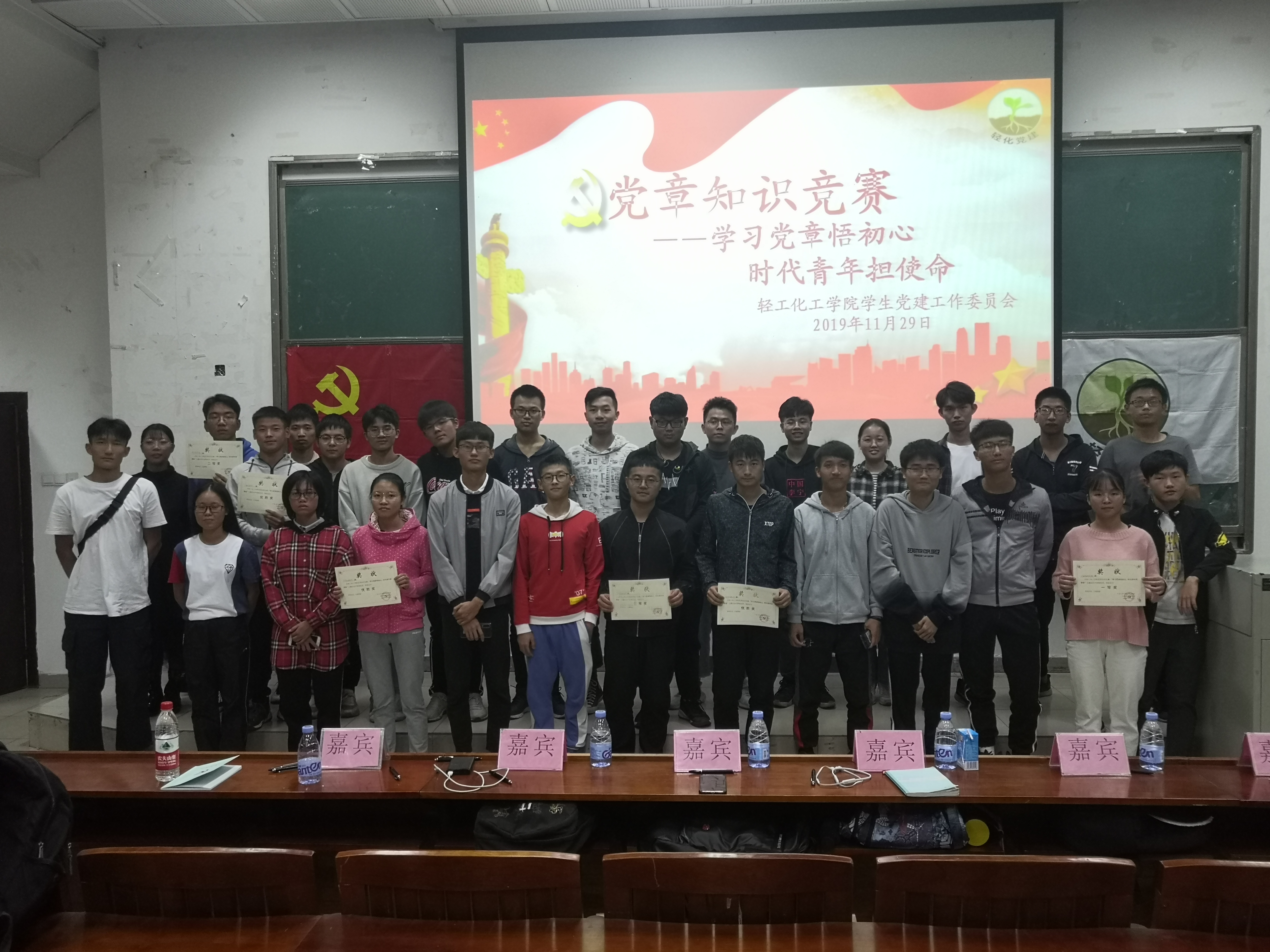 于11月29日晚19:00在五号大课室举行党章知识竞赛决赛。土木党建培训部部长黄木长,化学工程与工艺第一党支部书记曾科文,应用化学第一专业党支部副书记李柱荣,live007即时比分