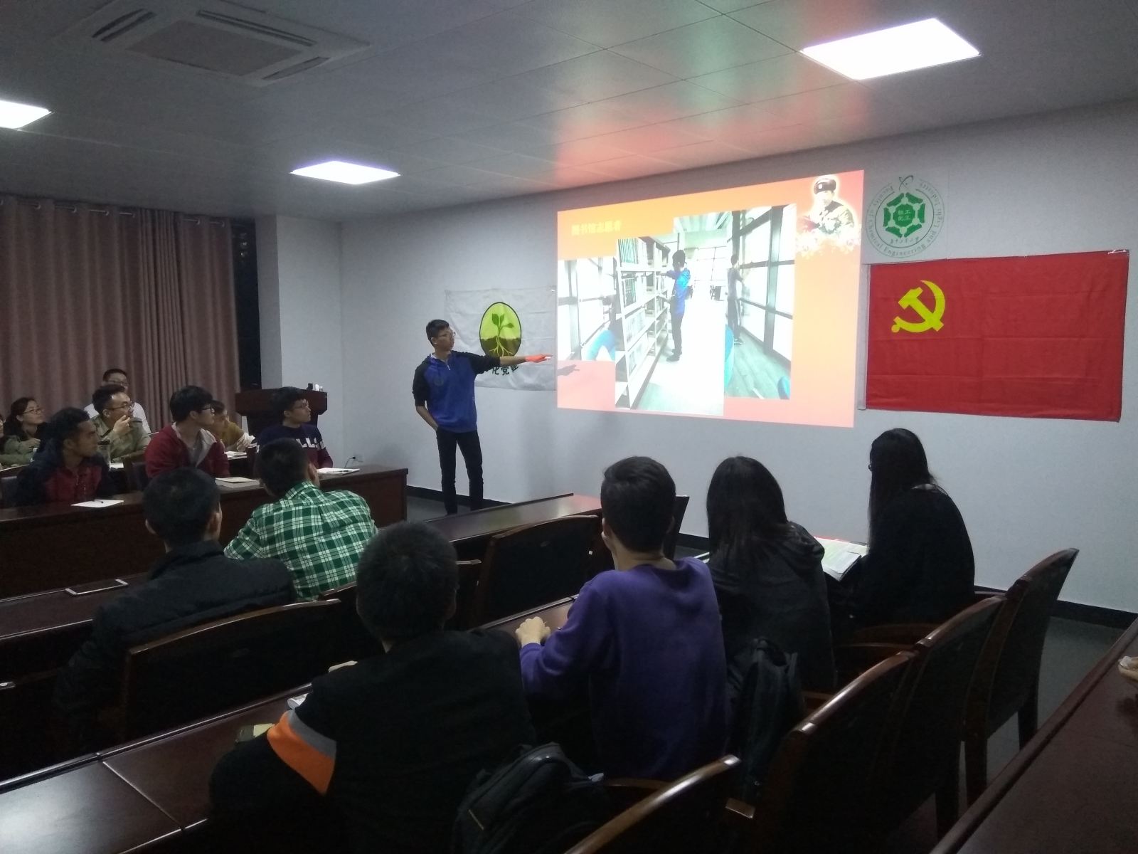 分享会第一环节为各党支部主讲人做活动总结。14级应化专业党支部组织开展了在宿舍区文明摆放单车的志愿服务活动,整理乱停放的单车,并指引文明摆放;14级创新卓越班党支部讲述了他们在图书馆做义工的点滴故事,号召大家从身边小事做起,将雷锋精神融入日常生活;14级化工(3、4)班党支部组织同学们去往湿地公园清理垃圾,以及开展了教学楼关灯等倡导绿色环保的服务活动,同时谈到党员同志在参与志愿服务的过程中,既能不断提升自身道德素养,也能以更好的精神品格去影响带动他人……