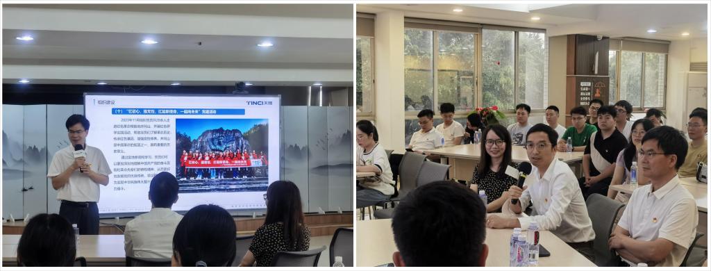 交流会上梁建龙分享天赐材料党支部在党建活动、组织建设、党纪活动等方面的开展情况。他表示,企业与高校在党支部活动建设方面有诸多相似之处希望校企多多交流学习,为双方带来更多的共建机遇和合作空间,推动校企共同进步史利涛介绍了天赐材料的发展历程、战略布局成果转化以及人才需求,期待通过深化校企合作,吸引更多优秀毕业生加入天赐材料。他提醒学弟学妹,在求学阶段,除专业知识、科学研究外,还要注重创新综合素质的提升,团队协作、统筹规划等实际应用技能的塑造与培养柳晨醒与宋旻子陌立足岗位研发方向,深入阐述了天赐材料及研究院的主营业务与创新研发优势,并结合自身实际分享了就业经历与职场感悟在场师生与企业代表围绕党建与业务深度融合、专业技能提升以及创新能力培养等方面展开了探讨和交流,现场氛围轻松融洽,反响热烈