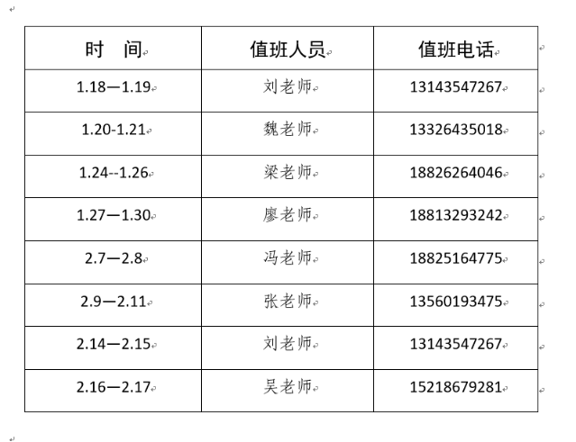 1.假期会议室预约管理:钟苑辉同学(年前)18813945879;陈达塘(年前)13060907275;陆嘉晟(年后)18682128363