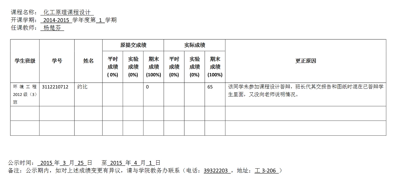 成绩变更公示
