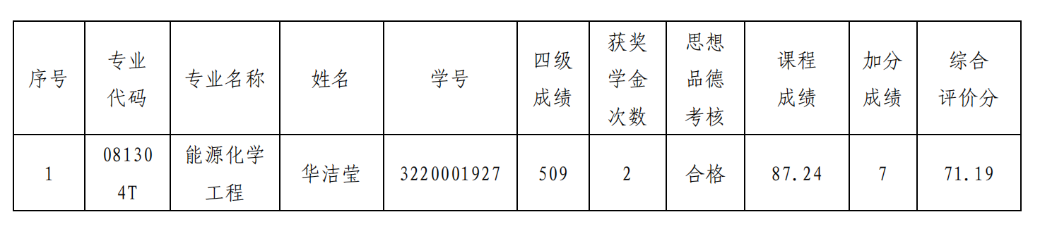 2020级能源化学工程专业有一位学生自愿放弃live007比分-live007即时比分 2024年推荐免试攻读研究生的资格,按照同专业总成绩由高到低排序递补的原则,拟递补推荐学生信息如下: