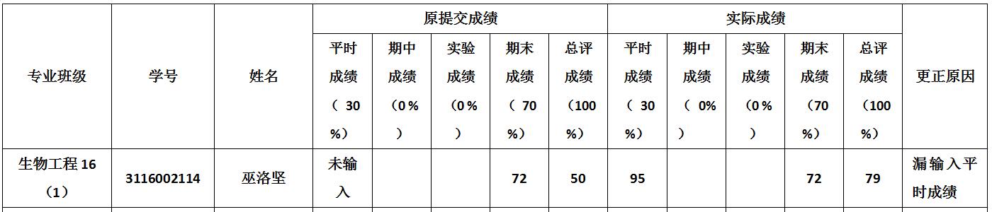 备注:公示期内,如对上述成绩变更有异议,请与live007比分 教务办联系(电话:39322203,地址:工4-201-3)