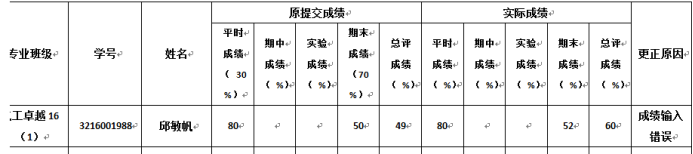 备注:公示期内,如对上述成绩变更有异议,请与live007比分 教务办联系(电话:39322203,地址:工4-202-3