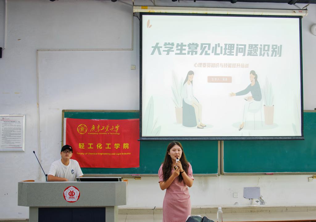 会上,吴洁老师以正态分布为引子,介绍当今社会人群心理状态的普遍现象,引出此次培训大会的主题——心理问题,并对神经症、人格障碍、心理障碍这三种心理异常进行详细介绍,让在场心理委员更深层次地了解到心理问题并不属于心理异常状态。另外,她将“心理异常与心理问题”比喻成“季节与天气”,将心理异常与心理问题具象化,强调心理委员应该及时发现并干涉同学们的心理问题,阻止其进一步恶化成心理异常。吴洁老师通过列举生活中常见的例子向心委们介绍了常见的心理问题,进而对心理问题进行详细剖析。