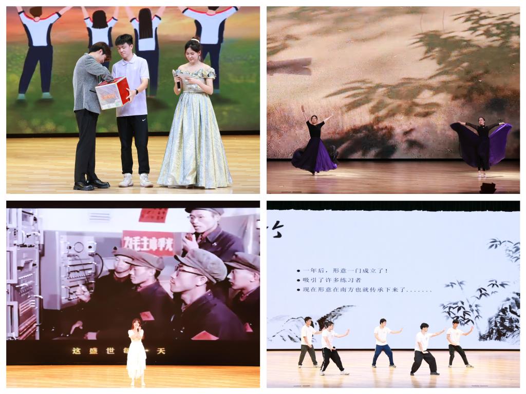 毕业晚会的第三篇章,前程似锦。舞蹈《人世间》给在场观众带来温暖与力量,以及对生活的热爱与执着;《如愿》一曲以悠扬的歌声深情献礼中华人民共和国成立75周年,动人的歌声把观众的思绪带进了这75年的奋斗历程中,激励着同学们心怀感恩,铭记前辈们为国家繁荣富强所付出的艰辛与汗水,以实际行动继续传承和发扬前辈们的精神,用智慧和力量为祖国的未来谱写更加辉煌的篇章;武术表演《开宗立派》用身体语言为我们描绘一幅充满朝气和活力的武林画卷;最后,两院辅导员与优秀毕业生共同演唱的《凤凰花开的路口》和《干杯》把这场师生同乐的晚会推向高潮。