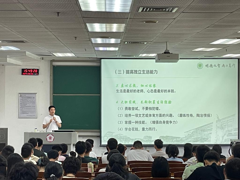 学科及自身的成长经历,为同学们介绍了行业形势、就业方向等,以此让新生更好地了解自己所学专业的前沿发展动态、交叉学科情况和升学就业前景,提高新生对自身所学专业的认识,提高其对专业的认同感与归属感。