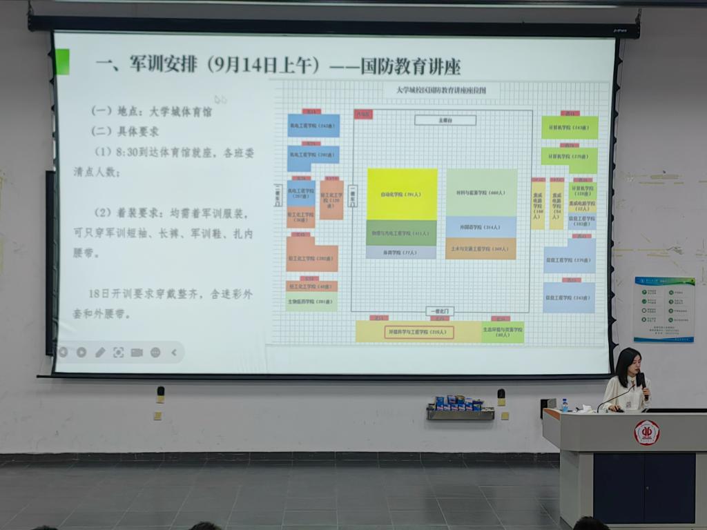 随后,新生辅导员林沛详细介绍了军训的日程安排、训练内容以及纪律要求,并寄语新生在军训中克服困难,挑战自我,在军训中收获成长,收获友谊,树立纪律观念,培养团队精神,增强国防意识,以饱满的热情、昂扬的斗志投入到军训中去,展现新时代青年的风采。