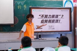 活动现场,志愿者们向一至二年级的学生科普了奥运会,向三至六年级的学生科普了伯努利原理。在一至二年级中,志愿者讲师首先与学生们回顾了我国在本次巴黎奥运会的新突破。随后,讲师围绕奥运服饰上文化元素、骑行头盔上的广工设计等元素,让学生们不仅被奥运会上的中国文化所吸引,也被运动员身上的奥运精神所感染。在三至六年级中,志愿者讲师首先带小朋友们通过吹乒乓球的小游戏来展示利用伯努利原理能更省力地将乒乓球吹出杯子,随后,志愿者讲师为小朋友们讲解了伯努利原理及其由来,还有伯努利原理在生活中的应用。