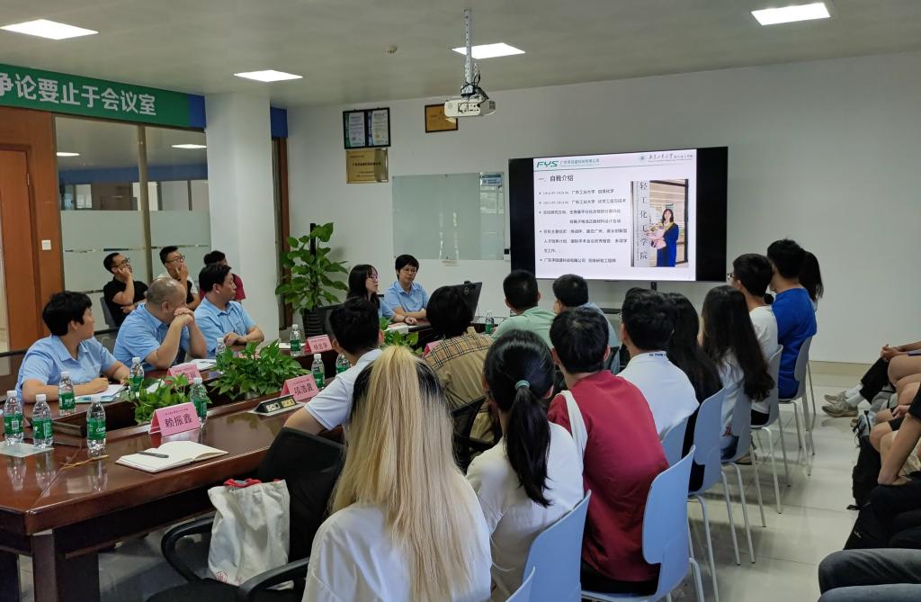 交流会上,孚延盛人力资源部部长童乐对到访的领导、老师和同学表示热烈的欢迎,技术总监杨忠学、日化研究院院长石毛对行业现状进行了介绍,对同学们表达了寄望,希望同学们能抬头看天,低头走路,脚踏实地,为科技兴国贡献力量。