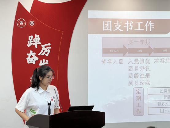 团委学生副书记伍保芝同学从团支书职责、团支书工作、如何开展主题团日活动等方面,详细介绍了班级团务工作的计划、工作重点及具体开展要求,深入浅出地讲解了班级组织建设与管理的基础知识,并剖析了班级组织结构的构建原理,强调了班长、团支书作为班级核心的重要性及其所需具备的能力与素养。这一培训不仅帮助新生班长、团支书厘清了班级建设与团务工作的脉络,更夯实了履行职责的理论基础。