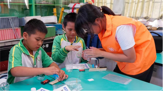 专业特长与小学生兴趣,设计了自制灭火器课程和盐水发电课程。在科普课上,主讲人充分运用专业知识,详细介绍自制灭火器和盐水发电的原理,耐心指导同学们亲手制作小实验。此活动不仅是知识传授,更是精神传承,以实际行动彰显了志愿服务精神中的友爱和互助,培育孩子社会责任感,催生更多未来公益力量,促进社会互助风尚的形成。