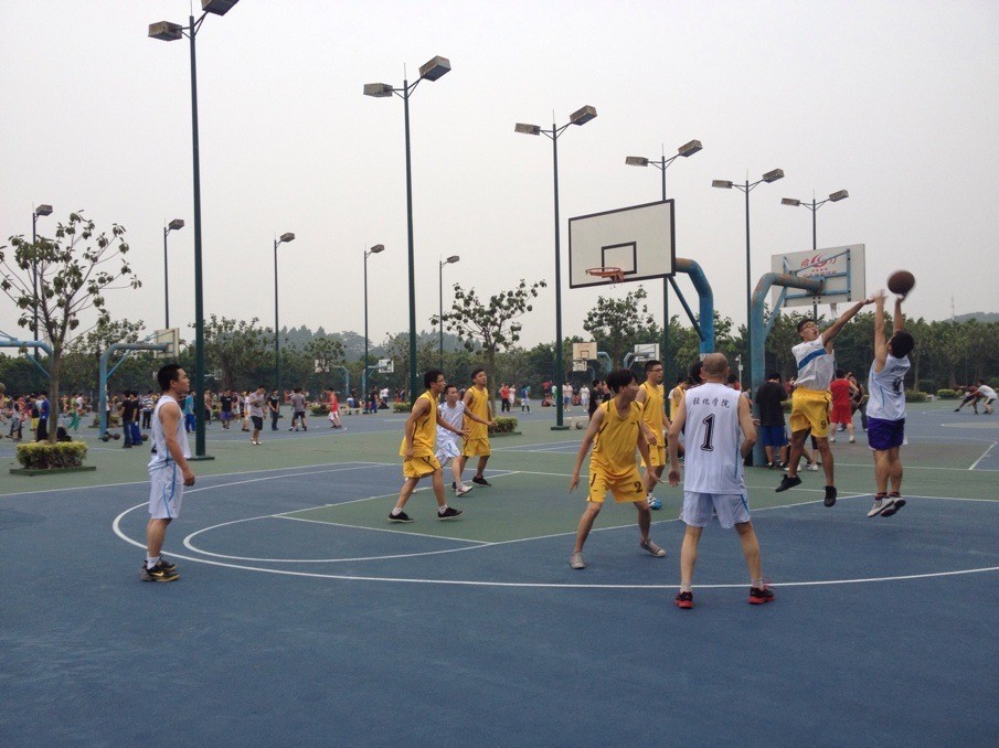 2013级研究生新生组成的篮球队与中青年教师组成的教工篮球队于10月16日下午下班后,在大学城篮球场C区打了一场精彩的友谊赛。