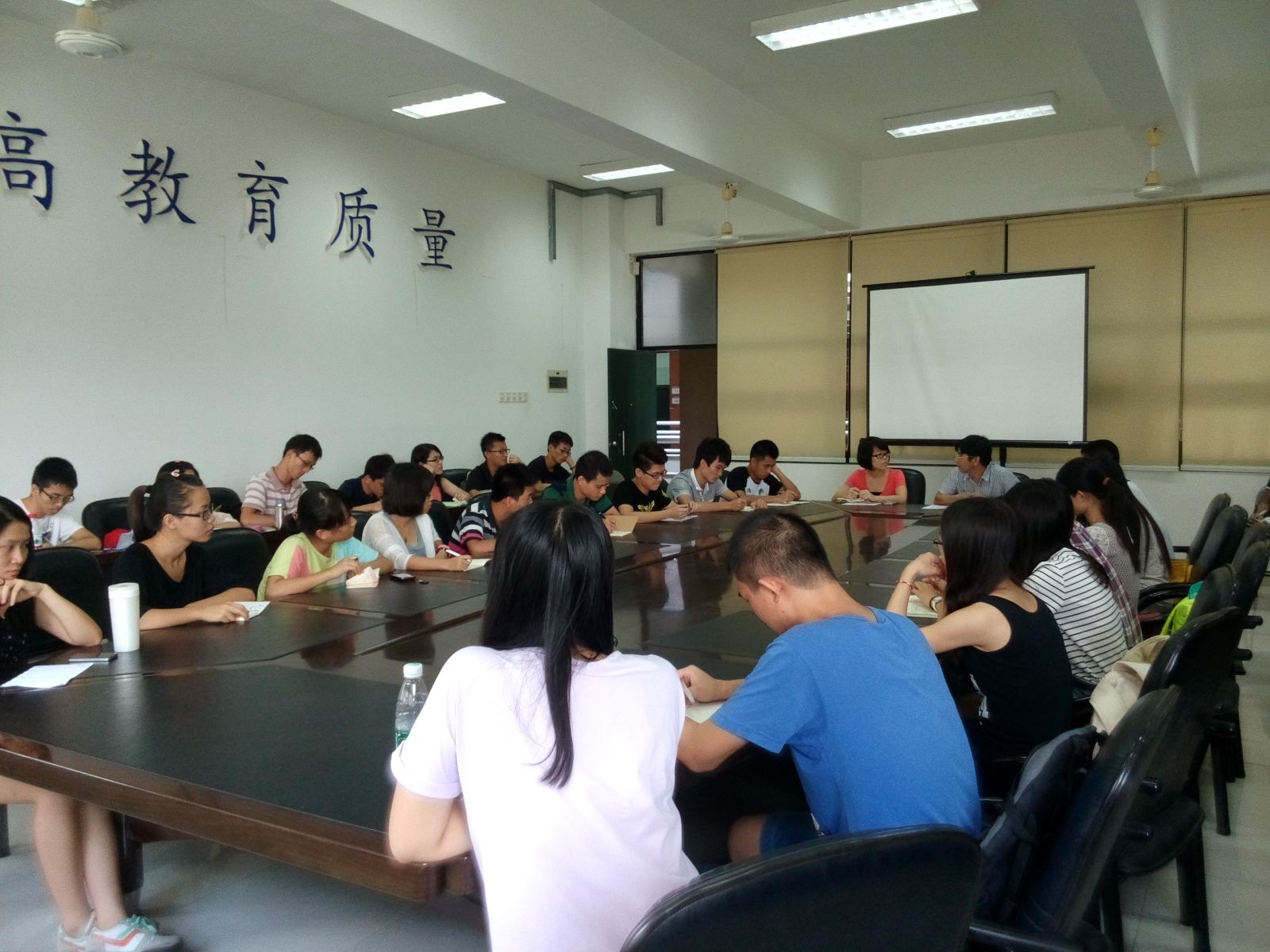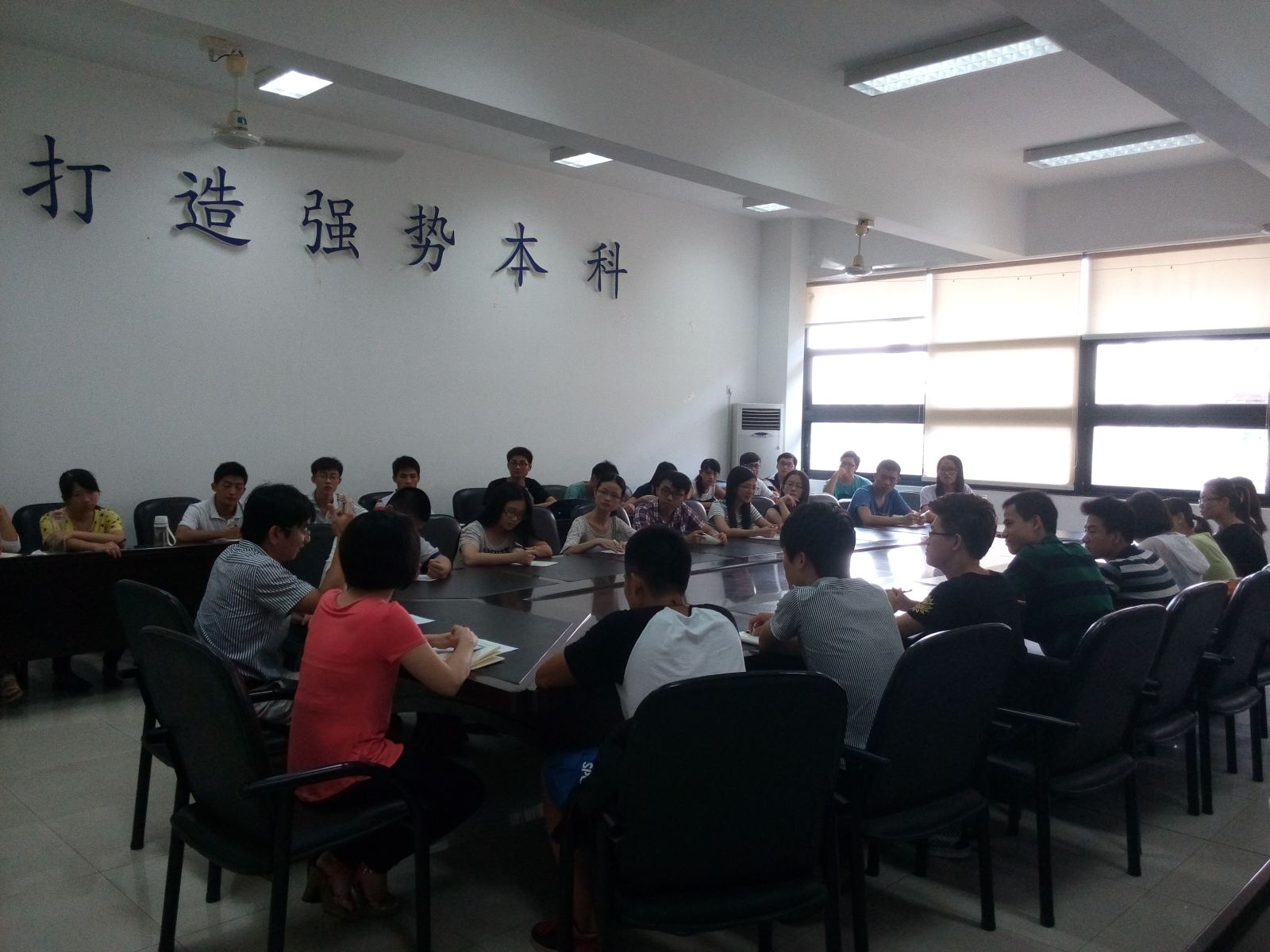 于工学三号馆220召开新学期12级班长团支书工作会议。2012级辅导员林焕章老师、李韵捷老师以及各班新竞选出来的班长、团支书参加了会议。