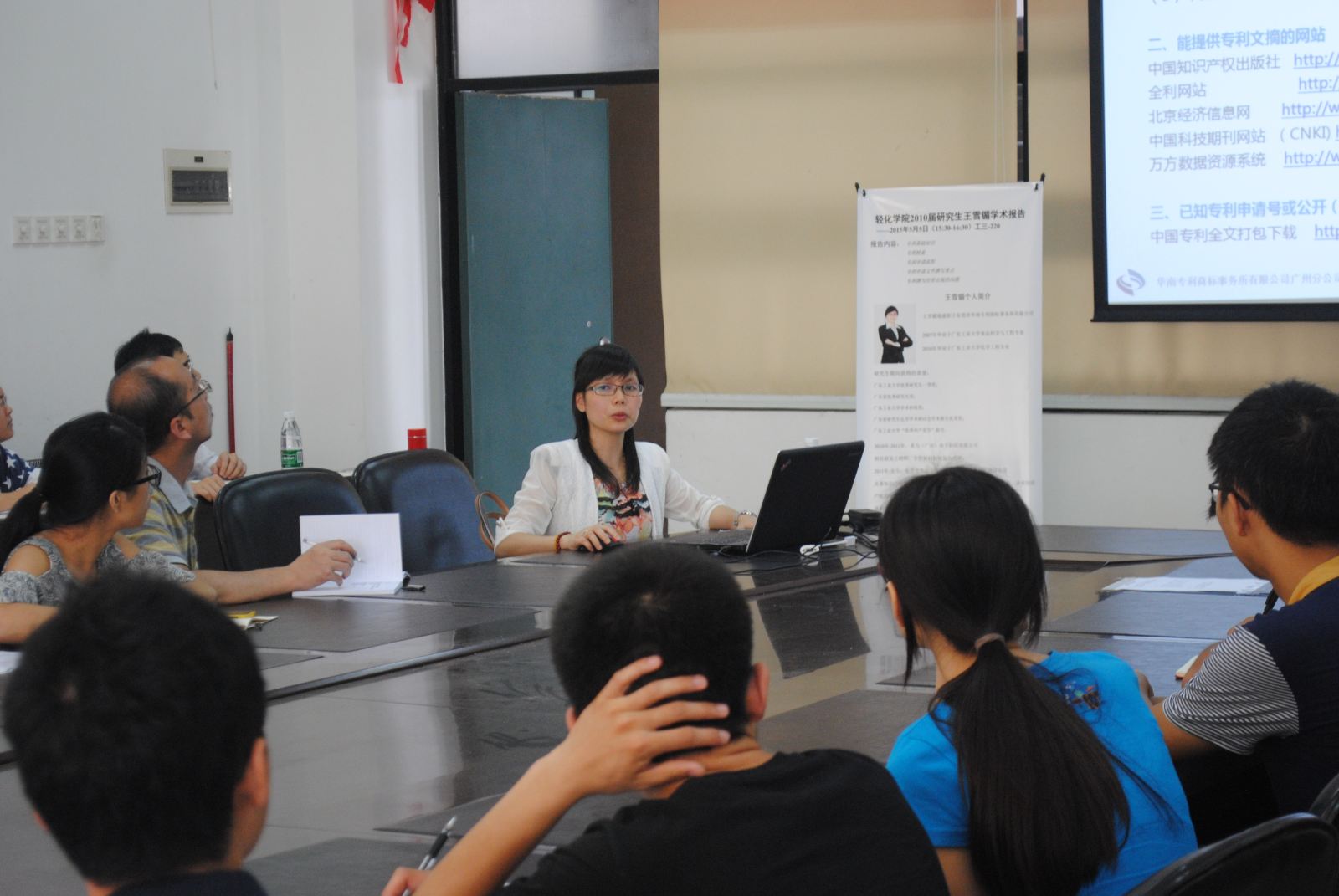 研究生做题为《专利检索、申请及撰写应注意的问题》的学术报告。