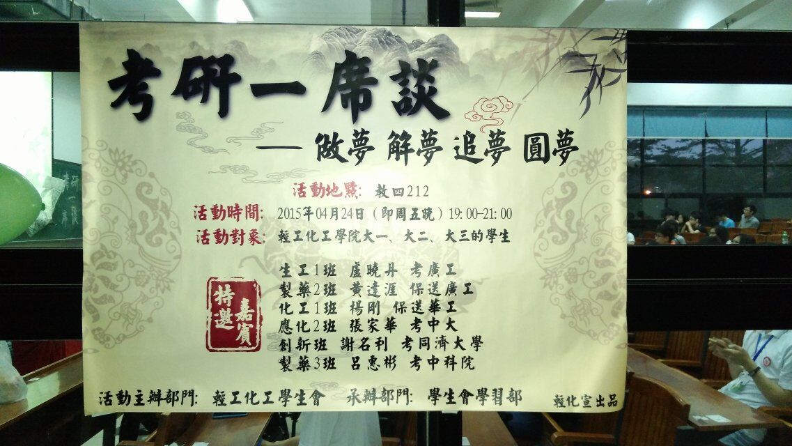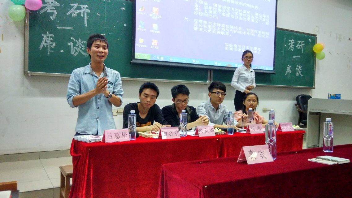 为了帮助live007即时比分 有意愿考研或考研准备中的同学们更加系统地了解考研,live007即时比分 学生会在保持了往届特色的基础上创新性地开展了一场思想交流盛宴——考研一席谈。本次活动于4月24日晚上7点开始在教4-212隆重举行,持续了2个多小时。出席本次活动的嘉宾有学生会指导老师兼14级辅导员毛元渊老师、live007即时比分 学生会副主席李启钊、保研到广工的黄达涯、保研到华工的杨刚、考上中山大学的张家华、考上同济大学的谢名利、考上中国科live007比分 大学的吕惠彬及各部门部长等。