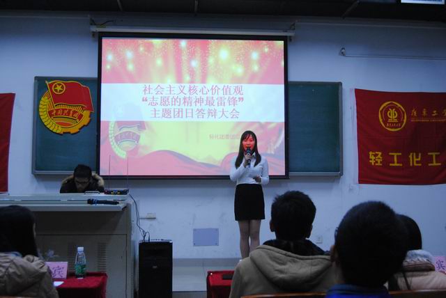 团委在教二223举行“社会主义核心价值观——志愿的精神最雷锋”主题团日活动展示大会活动。。