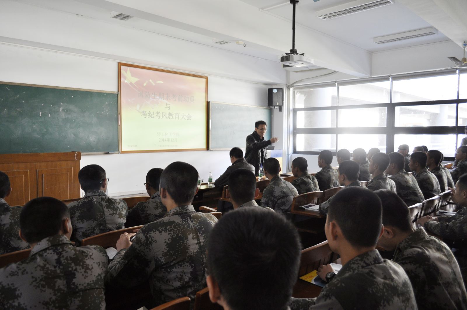 2014年12月17日下午,live007即时比分 在工学三号馆208室举行全院国防生期末考前动员与考纪考风教育大会。院党委英健文副书记、国防生管理办公室杨小帆副主任、杨刚老师以及国防生辅导员冯树清老师出席本次会议。