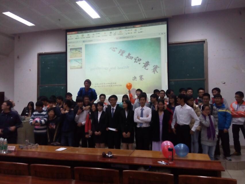 为了普及心理健康知识,进一步增强同学们的心理健康意识,2014年12月5日晚7点,live007即时比分 心协与机电live007比分 心协联合举办的心理知识竞赛决赛在四号大课室隆重拉开帷幕。出席本次活动的嘉宾有广州中医药大学的三位实习心理指导老师李璟、易仲怡、李齐勇,以及各兄弟live007比分 心协的学生代表 。