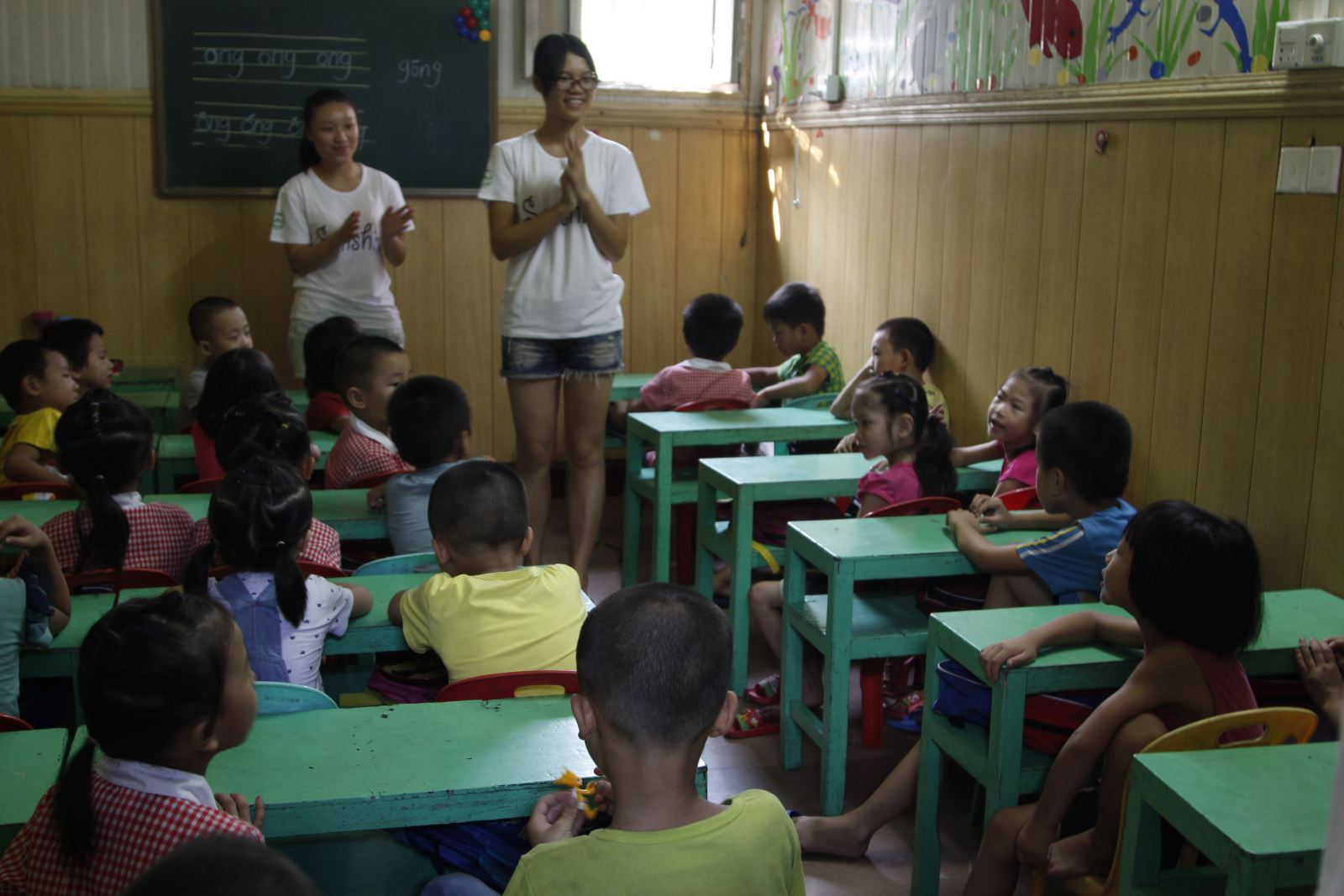 我们教会了幼儿园大班小朋友折纸,给小班的小朋友讲故事,并给大家进行象形文字教学,颇有趣味。这些活动不仅仅给孩子们带来了新的体验也让我们学会了如何用细心和爱心去带动教学。