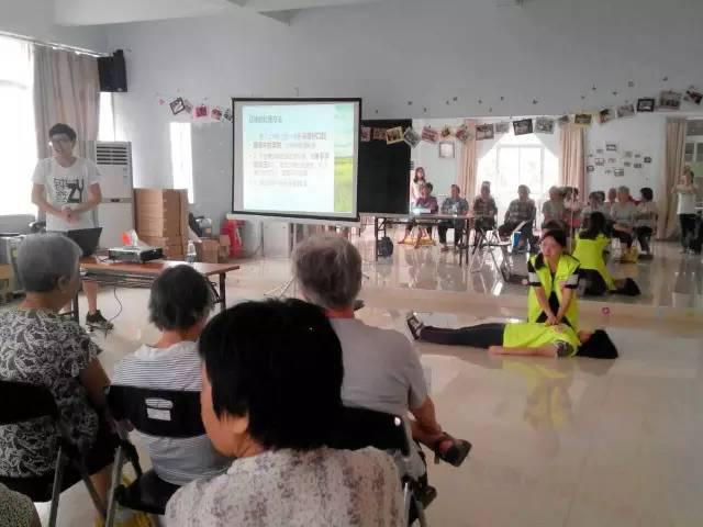 首先主讲人耐心地向老人讲解急救常识,同时用PPT投影让老人们能更加清晰地看到要点,图文并茂。可爱的工作人员先后进行了两次急救场景模拟。接下来,主讲人讲解常见的伤患急救方法以及各种实用的保健按摩法,老人们都听得兴致勃勃,时不时和身边的老人朋友们讨论做法,并跟着PPT里的视频的动作模仿起来,工作人员也不由自主地学起来,活动现场溢满欢声笑语。最后,主持人宣讲了与健康饮食相关的知识,并注意解答了老人们的疑惑,老人们非常感兴趣,引发热烈讨论。