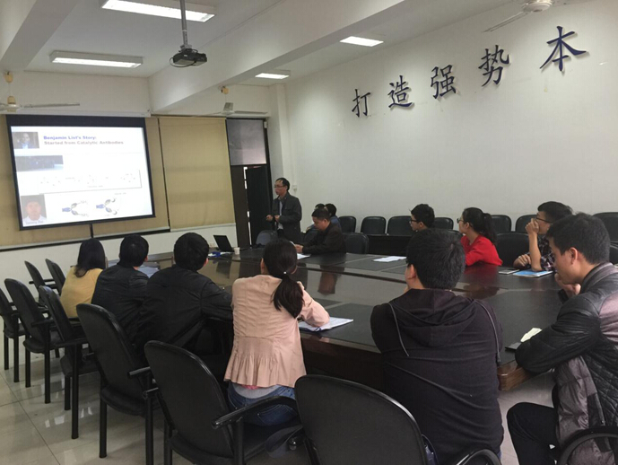 在长达1小时的报告过程中,谭斌博士不但讲述了有机催化的发展简史和他们的科研进展,和与会的青年教师、研究生们共同讨论了有机合成的一些问题,谭斌博士对有机催化的机理有着独到的见解,这种认识问题的方法为青年教师的和研究生的科研工作提供了重要的思想,最后谭斌博士把自己选题经验无保留的介绍给大家,并告诫大家一定要认真做好文献调研,走好自己的科研特色之路,争取未来能够做出打上自己科研标签的杰出工作,与会人员受益匪浅。