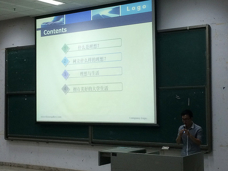 研究生党员王俊东,以“生活理想,理想生活”为主题,讲述自己认知的大学生活与理想信念之间的关系。通过周恩来和探险家约翰·戈达德的故事,表达了理想对人生的重要意义,并通过相关名言警句激励大家应当为追逐目标、实现理想而付诸实践、努力奋斗。最后,他勉励师弟师妹们从现在开始,认真思考并规划自己的大学生活,点滴着手、积极进取,与美好的自己相遇在最美好的大学时光。