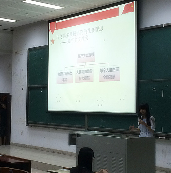 党章学习小组活动的一项重要内容。14级研究生党员王俊东、12级学生党员朱思思担任主讲,向同学们介绍入党流程、作入党动员,并畅谈自己的大学生活与理想追求,15级新生班级参与本次活动。
