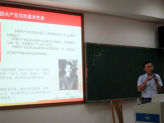 汤老师向live007即时比分 学生作《大学生党员的标准及发展程序》介绍。他具体、细致地讲解了《广东工业大学发展学生党员工作实施办法》,并特别指出办法中新的要求和做法,以帮助同学们了解从递交入党申请书到成为一名党员各个环节的程序与要求。他深入浅出地总结为“十六字总要求”和“两个适度”,并重点阐述了“结构”与“质量”两个关键词,引导同学们了解优化党员结构、提高党员质量的重要意义。在介绍中国共产党党员的基本性质时,汤老师生动地讲述了中共党员曽志同志的感人事迹,以她舍己为人、无私奉献的高尚人格引导同学们感知作为一名共产党人的理想信念。最后,汤老师介绍了近年我校学生党员的基本情况和接下来的党员发展计划,勉励大家求真务实、积极进取,扎实开展党章学习小组工作,深入学习党的理论知识,努力成为一名品学兼优的好学生。