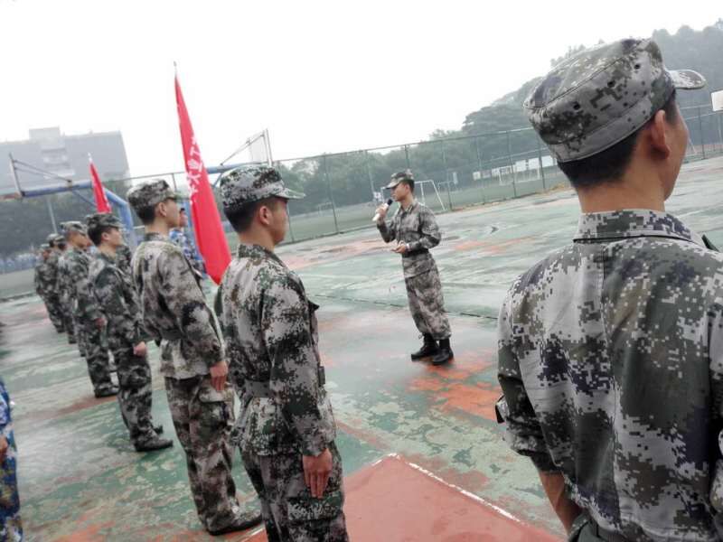 各排教官与同学们逐一见面,再次明确和强调了军训注意事项与部署安排,便分别带队开始训练。鲜艳的迷彩、整齐的队列、挺拔的身姿是点缀在篮球场的一道道亮丽风景,一声声响亮的口号与喊话回应在球场上空,见证着同学们的热情与力量。军训初体验,同学们首先感悟的是集体和队列之于一个军人的重要意义,开始明白只有挺拔、威严、整齐的队伍才能展现出一个军人应有的气质。在教官们严格而亲切的指导和训练中,同学们渐渐明白这份良苦用心,也渐渐有了更多的集体默契。