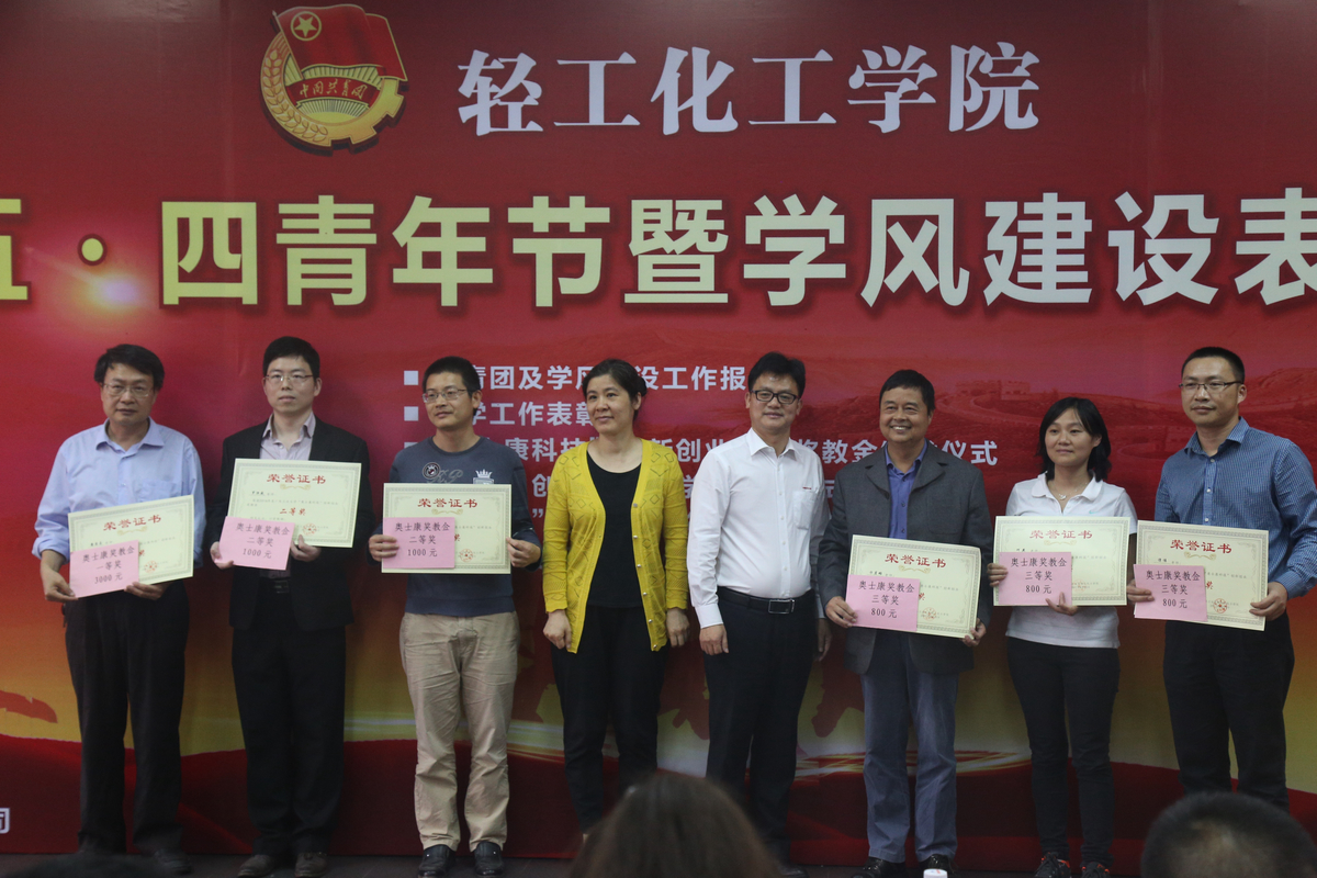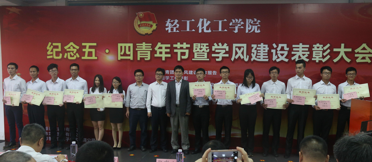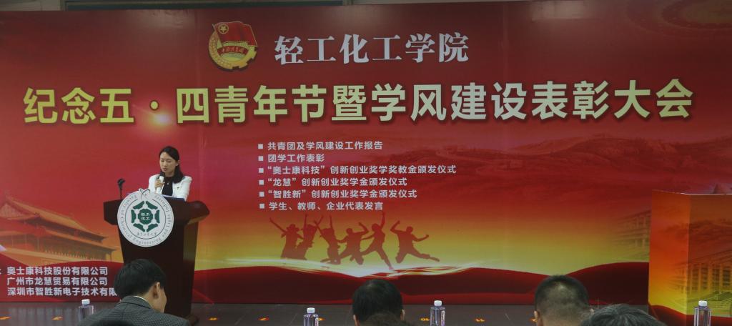 教师代表,奥士康公司王国安经理、龙慧公司符劲总经理、智胜新公司余克壮总经理共同为获得表彰的优秀团支部等16项荣誉、3项企业创新创业奖学金的领奖代表颁发了奖状或证书。live007比分