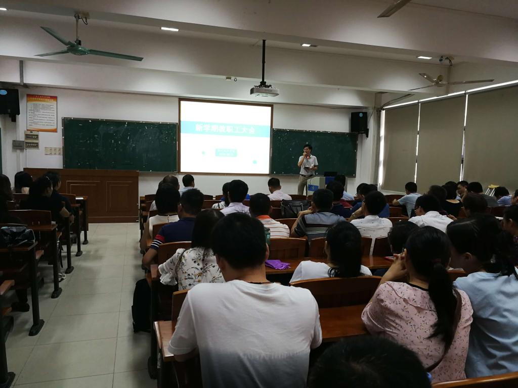 在大学城校区工学三号馆208会议室召开新学期工作大会,全院教职工参加了此次会议。