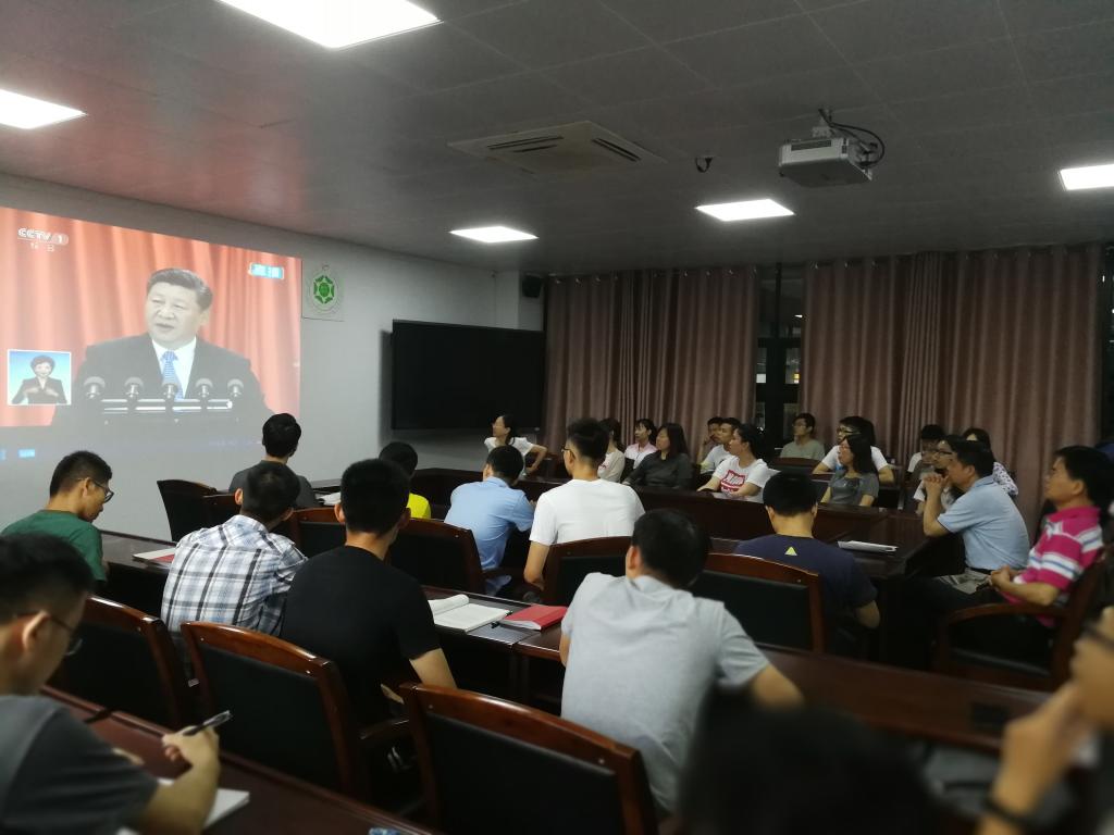 党委组织师生党员在工学四号馆202报告厅集中观看马克思诞辰200周年纪念大会现场直播,院党委委员、教工党支部书记、学生党支部书记等参加了活动。