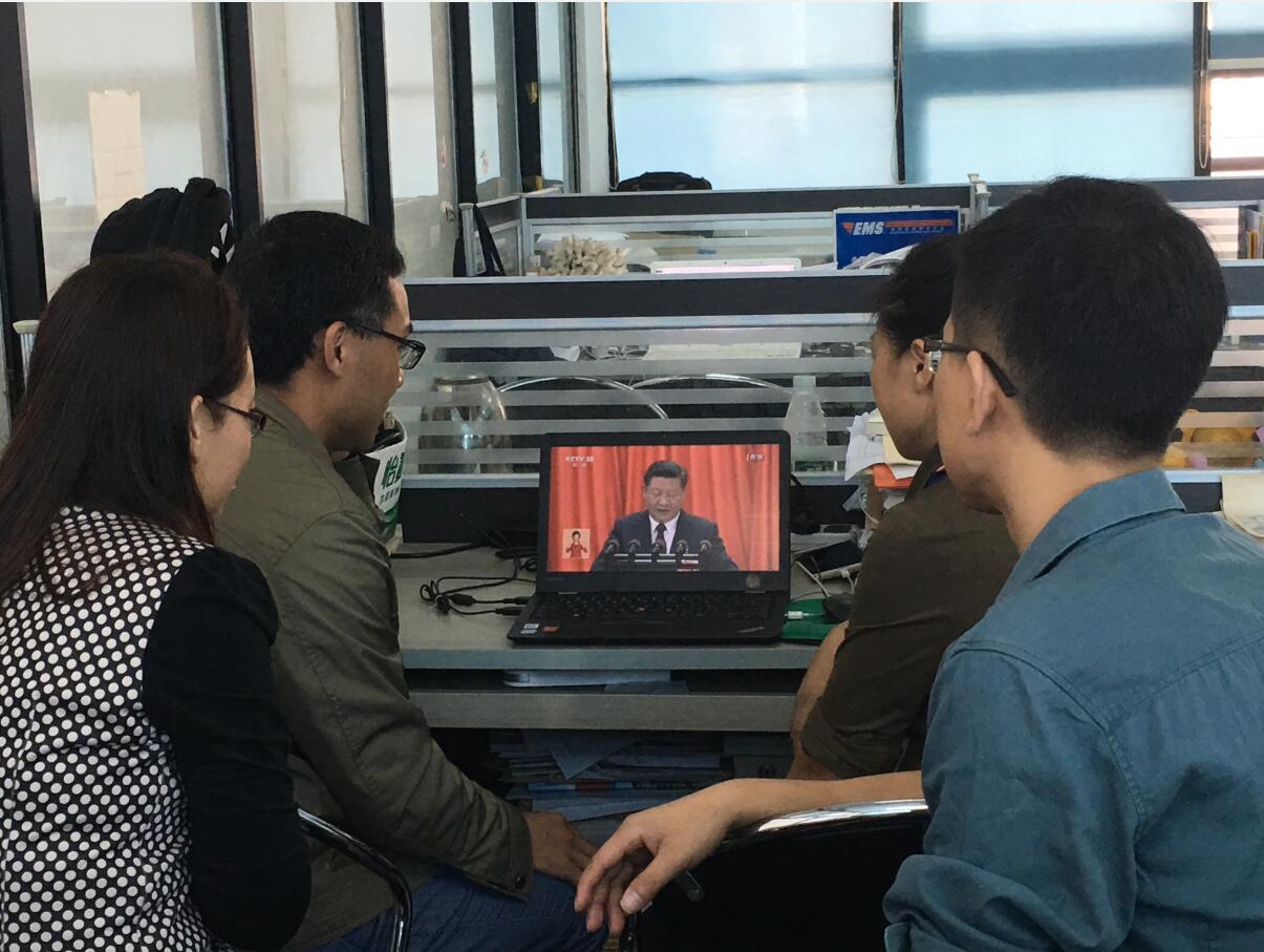 10月18日上午,按照学校党委的要求,live007即时比分 党委组织教工师生在各个办公室集中收看十九大开幕会直播盛况。