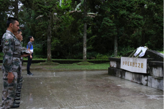 小井红军烈士之墓,又名红军伤病员殉难处,距小井红军医院不到百米。是那群宁死也不透露红军转移方向的一百多名红军伤病员及医护人员的长眠之所。毛泽东在烈士纪念碑上题词“死难烈士万岁”。在这里,充满的是信仰的力量,革命先烈们以热血荐主义,誓死不屈服于反动派的威逼利诱,这是气壮山河的英雄气概。国防生队员穿着整洁的军装,踏着整齐的步伐,缓缓向墓碑走来,在老师的带领下集体向烈士墓鞠躬、默哀,表达队员对革命烈士的缅怀。之后,国防生队员拜谒了曾志老红军墓,学习一名纯粹共产党人对共产主义的坚定信仰、对革命的无私奉献和为人处世的高风亮节。