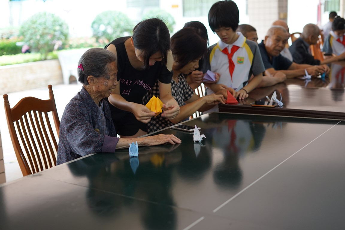7月13日,实践队按照既定计划,前往高埗镇敬老院访问老人,同时了解当地的情况,进行实地考察。活动期间,实践队员为老人们带来了精彩的表演以及亲切的问候。次日上午,实践队员组织并带领当地小学生举行以“携童心,高埗行”为主题的活动,活动期间,实践队员为老人及小朋友们带来了有趣的生活小实验,并教导了他们一些生活小常识。随后,实践队员教导并带领小朋友们和老人们一起折纸以及祈福。最后,小朋友们为老人们写下美好的祝愿,祝愿老人们健健康康,长命百岁。