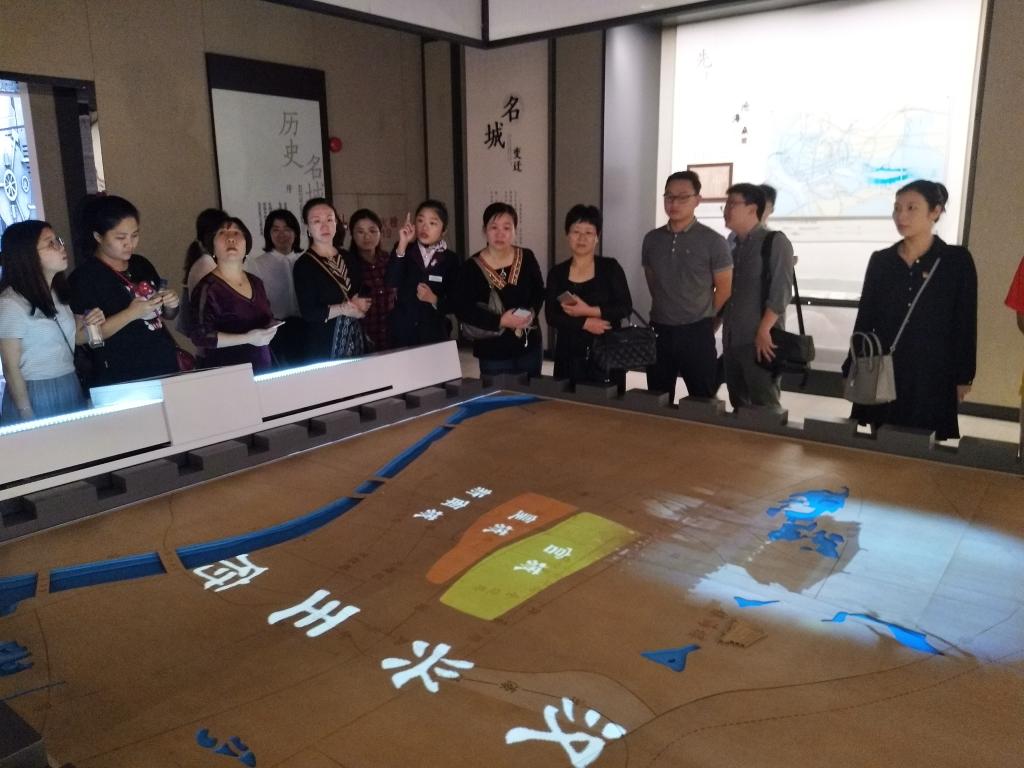 广州档案馆分为名城变迁、千年海丝、近代风云和近代文化四部分,档案馆通过图文并茂的形式,运用现代化高科技手段和构筑智能化互动体验,展现了广州自公元前二百一十四年南海郡尉任嚣筑番禺城开始的辉煌历史,深刻展示了广州在海上丝路中的中心地位和在中国近代大变革中的历史贡献。参观过程中,老师们结合中国“一带一路”发展战略学习到“开放包容”“互学互鉴”这一植根历史、面向未来,立足中国、朝向世界的丝路精神,体会到从历史的角度看问题,更有利于把握前进方向和指导现实工作的能力。最后,我们还在演示厅观看了广州发展历史影片。