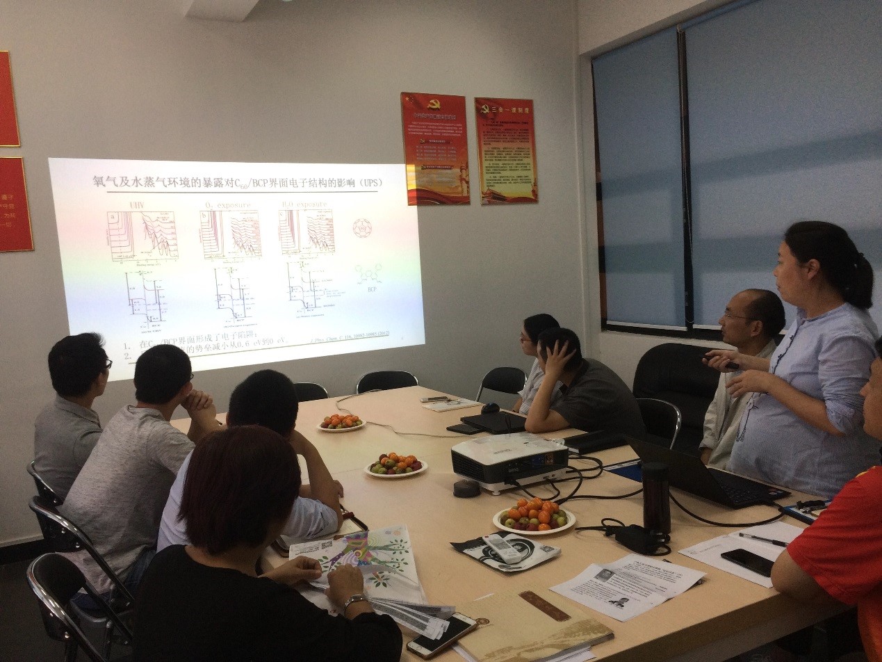 会议伊始,live007即时比分 应化系青年百人杨庆旦副教授以 “界面电子结构对有机光伏器件性能的影响”为主题做报告,重点介绍了借助紫外射线光电能谱和X射线光电子能谱,在超高真空条件下(基压10-10 Torr)研究有机光伏材料在界面之间的相互作用及界面电子结构变化对器件性能的影响,从而提高器件的光电转化效率及长期稳定性,以期解决制约有机光伏器件商业化的瓶颈问题。