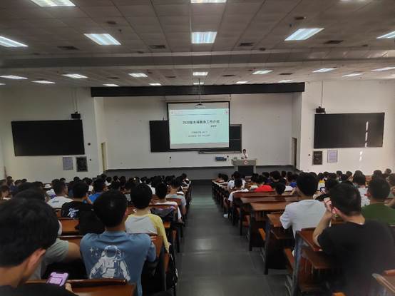 廖晨艳老师进行本科生教务工作介绍,她提醒学生及时缴纳学费,科普选课、辅助、重修、缓考申请;毕业资格审核;教材订购;教务系统的使用以及毕业证获取的必要条件。